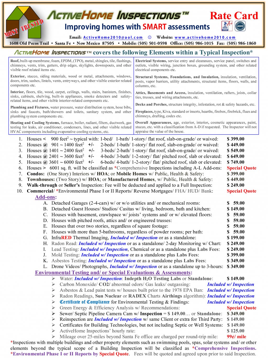 Inspection Rate Card